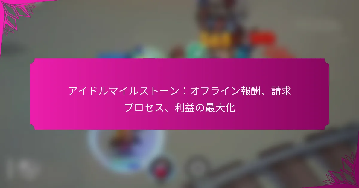 「セブンナイツアイドルアドベンチャー」におけるアイドルマイルストーンは、プレイヤーがオフラインの間でも報酬を得ることができる重要な機能であり、ゲーム体験を向上させます。非アクティブな期間中にリソースや利益を蓄積することで、プレイヤーは進行を大幅に促進できます。これらのオフライン報酬を受け取るプロセスを理解することは、提供される利点を最大限に活用するために重要です。 セブンナイツアイドルアドベンチャーにおけるアイドルマイルストーンとは? 「セブンナイツアイドルアドベンチャー」におけるアイドルマイルストーンは、プレイヤーがオフラインの間に進行に対して報酬を得るための重要な機能です。プレイヤーは、ゲームを積極的にプレイしていないときでも利益やリソースを蓄積でき、全体的なゲーム体験を向上させます。 アイドルマイルストーンの定義と目的 アイドルマイルストーンは、ゲーム内でプレイヤーの成果や進行を追跡するチェックポイントとして機能します。その主な目的は、非アクティブな期間の後に受け取れる報酬を提供し、プレイヤーがゲームに投資した時間に対して報われる感覚を確保することです。 この機能は、プレイヤーが定期的にゲームに戻ることを促し、ゲームプレイを向上させるための重要なインセンティブを提供します。オフラインの期間中に報酬を蓄積することで、プレイヤーはより迅速かつ効果的に旅を進めることができます。 ゲームプレイにおけるオフライン報酬の重要性 オフライン報酬は、プレイヤーのエンゲージメントを維持する上で重要であり、プレイヤーが積極的に参加していないときでも進行感を提供します。これらの報酬には、ゲーム内通貨、アイテム、または全体的な進行に寄与する経験値が含まれることがあります。 オフライン報酬を統合することで、ゲームはプレイヤーが効率を最大化できるようにします。たとえば、プレイヤーは1日の非アクティブな後にログインすると、 substantialなリソースが待っていることがわかり、これが戦略やゲームプレイの決定に大きな影響を与える可能性があります。 アイドルマイルストーンが全体のゲームメカニクスにどのようにフィットするか アイドルマイルストーンは、クエストやバトルなどの他のシステムと連携して、ゲームのメカニクスにシームレスに統合されています。これらの要素を補完し、ゲームのさまざまな側面で利用できる報酬の一貫した流れを提供します。 プレイヤーは、オフラインの時間に対して利益を受け取ることができることを知って、アイドルマイルストーンを中心にゲームプレイを戦略的に計画できます。これにより、アクティブなプレイとパッシブなプレイのバランスの取れたアプローチが促進され、より楽しい体験が可能になります。 ゲーム内の他のマイルストーンとの比較 アクティブな参加や特定の成果を必要とする他のマイルストーンとは異なり、アイドルマイルストーンはオフライン報酬に焦点を当てている点でユニークです。他のマイルストーンは、タスクを完了したり特定のレベルに達することを必要とすることが多いですが、アイドルマイルストーンはプレイヤーがゲームから離れている時間に対して報酬を与えます。 アクティブマイルストーン: プレイヤーのエンゲージメントとタスクの完了を必要とします。 アイドルマイルストーン: プレイヤーが非アクティブであることに対して報酬を与え、異なる戦略を促進します。 この違いは、ゲームに継続的に関与する時間がないプレイヤーにとって特に魅力的です。 アイドルマイルストーンに関連する一般的な別名と用語 プレイヤーは、アイドルマイルストーンを「オフライン報酬」、「パッシブ報酬」、または単に「マイルストーン」と呼ぶことがよくあります。これらの用語は、アクティブなゲームプレイなしで利益を提供する機能に焦点を当てています。 これらの別名を理解することで、プレイヤーはゲームに関連する議論やガイドをナビゲートし、アイドルマイルストーンを最大限に活用できるようになります。これらの用語に慣れることで、プレイヤーコミュニティ内でのコミュニケーションが向上し、戦略の策定に役立ちます。 セブンナイツアイドルアドベンチャーにおけるオフライン報酬とは? 「セブンナイツアイドルアドベンチャー」におけるオフライン報酬は、プレイヤーがゲームを積極的にプレイしていない間に得られる利益です。これらの報酬には、ゲームプレイや進行を向上させるさまざまなリソースやアイテムが含まれます。 利用可能なオフライン報酬の種類 プレイヤーは、金、経験値、特別なアイテムなど、いくつかの種類のオフライン報酬を受け取ることができます。これらの報酬は時間とともに蓄積され、プレイヤーがゲームに戻ったときに受け取ることができます。 金:アップグレードや購入に使用される通貨。 経験値:プレイヤーレベルを上げ、