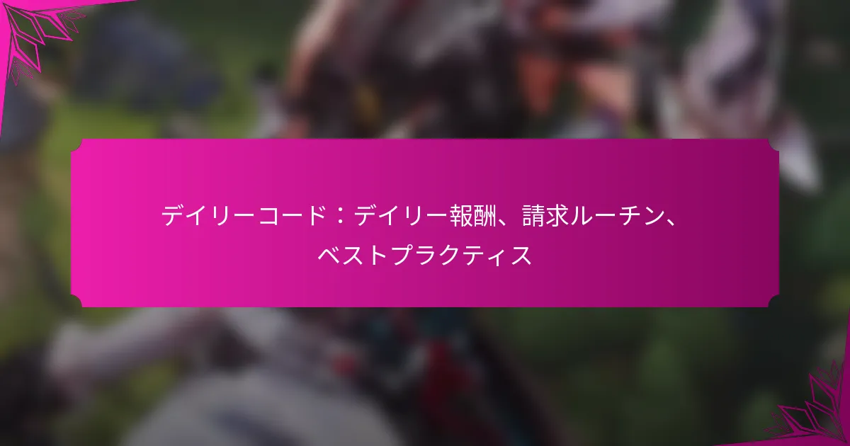 「セブンナイツアイドルアドベンチャー」のデイリーコードは、プレイヤーに日々の報酬を獲得する機会を提供し、継続的なプレイを促進し、エンゲージメントを高めます。獲得プロセスを理解し、ベストプラクティスに従うことで、プレイヤーは効率的に報酬にアクセスし、その利益を最大化できます。コミュニティとの交流は、これらの日々のインセンティブを管理するための戦略をさらに向上させることができます。 セブンナイツアイドルアドベンチャーにおけるデイリーコードとは? セブンナイツアイドルアドベンチャーにおけるデイリーコードは、プレイヤーが日々さまざまな報酬を獲得できる機能です。このシステムは、毎日ログインするためのインセンティブを提供することで、定期的なプレイを促し、プレイヤーのエンゲージメントを高めます。 デイリーコードの定義と目的 デイリーコードは、プレイヤーが報酬を受け取るために入力できるユニークなコードです。その主な目的は、プレイヤーが毎日ゲームに戻るように動機づけ、安定したゲームプレイのルーチンを促進することです。報酬を提供することで、デイリーコードは全体的なゲーム体験を向上させ、プレイヤーが自分の進捗に投資し続けることを助けます。 プレイヤーは、公式ゲームチャンネルやソーシャルメディアプラットフォームを通じてデイリーコードを見つけることができます。このアクセスのしやすさにより、プレイヤーは簡単に参加し、提供される報酬の恩恵を受けることができます。 デイリーコードに関連する報酬の種類 デイリーコードに関連する報酬は多岐にわたり、プレイヤーに貴重なゲーム内アイテムやリソースを提供します。一般的な報酬には以下が含まれます: ゴールドまたはゲーム内通貨 キャラクターの破片またはヒーローのアップグレード レベルアップのための経験値 特別なアイテムまたは装備 これらの報酬は、ゲームプレイを向上させ、プレイヤーがより効率的に進行できるように設計されています。報酬の多様性は体験を新鮮に保ち、プレイヤーが定期的にログインすることを促します。 デイリーコードがゲームプレイに統合される方法 デイリーコードはゲームの日常的なルーチンにシームレスに統合されており、プレイヤーがゲームセッションに簡単に組み込むことができます。プレイヤーはプレイ中の任意の時点でコードを入力できるため、報酬を逃すことはありません。 この統合は、プレイヤーが他のゲーム機能に関与することを促します。なぜなら、デイリーコードから得た報酬を最大限に活用するためには、特定のタスクやチャレンジを完了する必要があるからです。これにより、より包括的なゲーム体験が生まれます。 デイリーコードの一般的な別名 デイリーコードは、ゲームコミュニティ内でさまざまな名前で呼ばれることがあります。一般的な別名には以下が含まれます: デイリー報酬コード ログインコード デイリーボーナスコード これらの別名を理解することで、プレイヤーは利用可能な報酬やプロモーションについて情報を得やすくなり、潜在的な利益を逃すことがありません。 プレイヤーにとってのデイリーコードの重要性 デイリーコードは、プレイヤーにとって重要です。なぜなら、安定した報酬を提供し、ゲーム体験を大幅に向上させるからです。これらの報酬を定期的に獲得することで、プレイヤーはより早く進行し、チームを強化できます。 さらに、デイリーコードはプレイヤー間のコミュニティ意識を育むため、プレイヤーはコードや報酬を最大化するための戦略を共有することがよくあります。この社会的側面は、プレイヤーの定着率やゲームの楽しさを向上させることができます。 デイリーコードを使用してデイリー報酬を獲得するにはどうすればよいですか? デイリーコードを通じてデイリー報酬を獲得することは、ユーザーが定期的に利益を受け取ることを可能にする簡単なプロセスです。特定の手順に従い、要件を理解することで、毎日簡単に報酬にアクセスできます。 報酬を獲得するためのステップバイステッププロセス デイリー報酬を獲得するには、まずデイリーコードを提供するプラットフォームにアカウントでログインします。ログインしたら、デイリーコードが表示されている報酬セクションに移動します。ここで、デイリー報酬を獲得するオプションが表示されます。 獲得オプションを選択した後、通常は通知やメールを通じて提供されるデイリーコードを入力する必要があります。エラーを避けるために、コードを正確に入力してください。 コードが確認されると、報酬がアカウントにクレジットされます。取引が成功したことを確認するために、確認メッセージをチェックしてください。 デイリーコードを有効にするために必要なアクション デイリーコードを有効にするには、いくつかの基本的なアクションが必要です。まず、アカウントが正常
